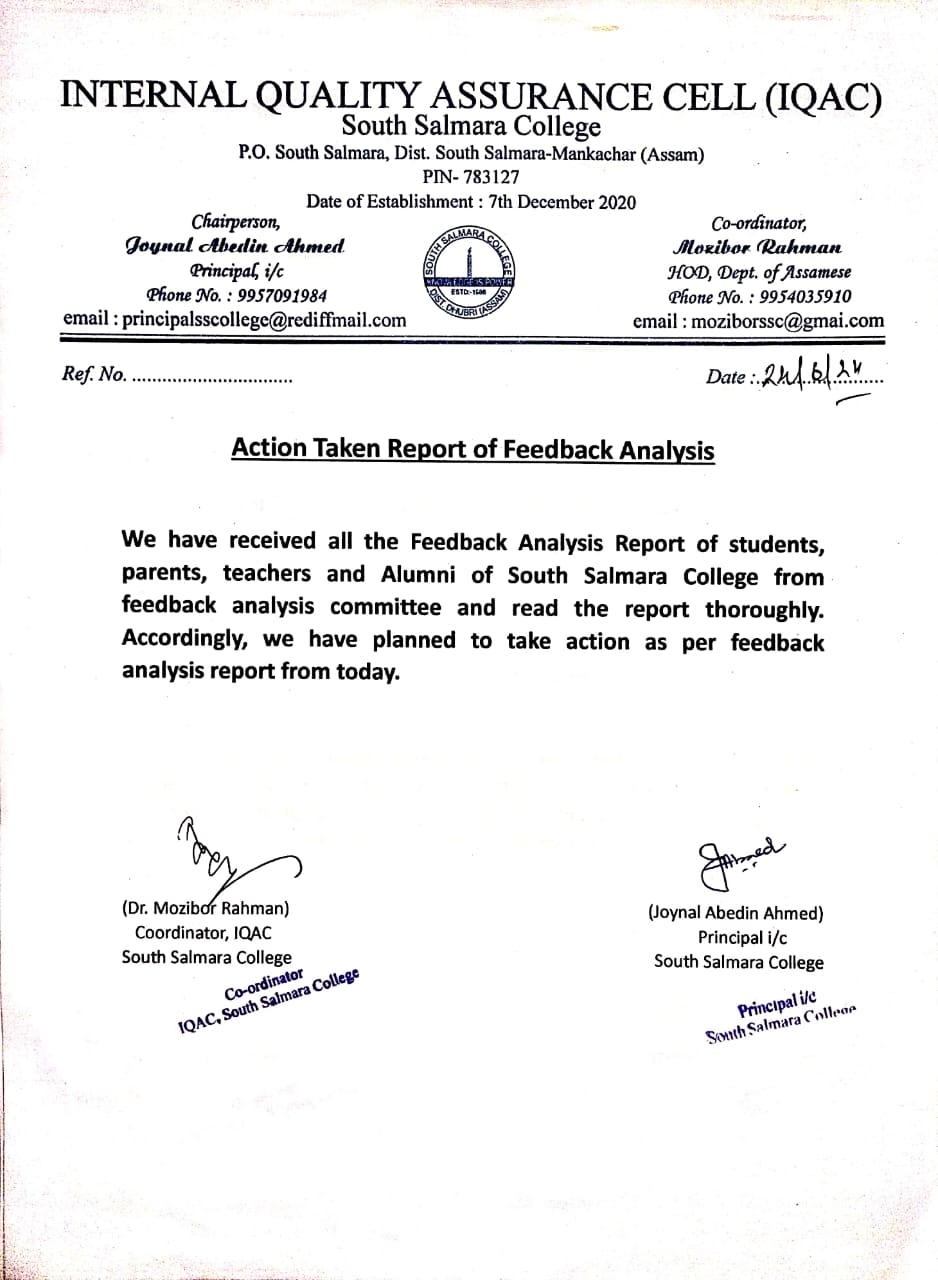 Action Taken Report of Feedback
